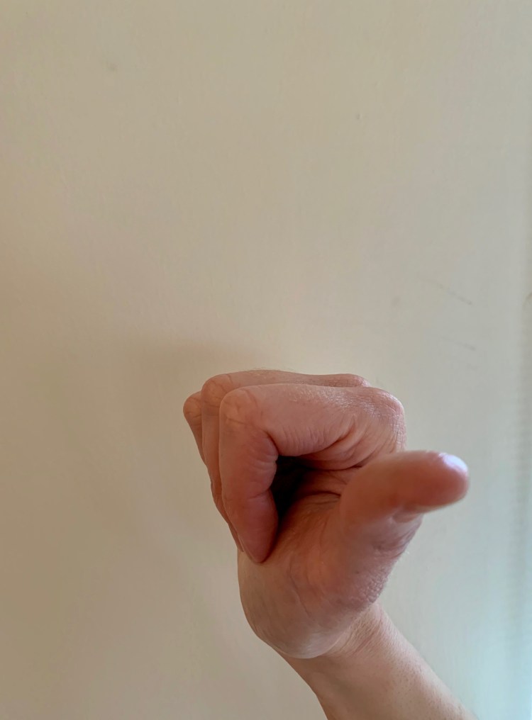 Make a beak or glove puppet shape (knuckles bent, fingers straight)