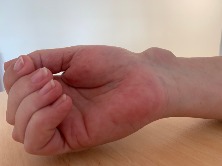 Lumps and bumps may present anywhere in the hand and wrist. The vast majority are not worrying and are benign, that is they are not cancerous.