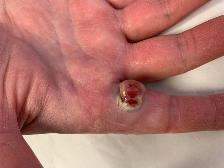 This is a benign lesion with no obvious cause. They can arise from a site of very trivial trauma or injury anywhere in the hand and wrist. They often grow rapidly and cause some bleeding if knocked. They can be associated with infection, although the lesion itself is not infectious. Unfortunately, they do not tend to resolve spontaneously and surgical treatment is often necessary.